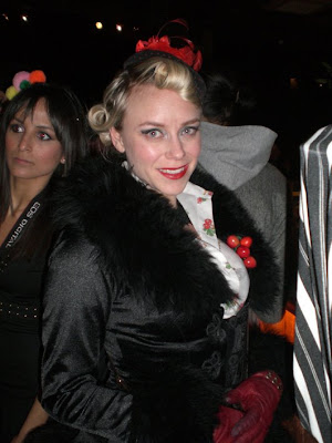 I love the elegance of her 40's style, also the best hair do of the party! Well done darling says the pin up in me!